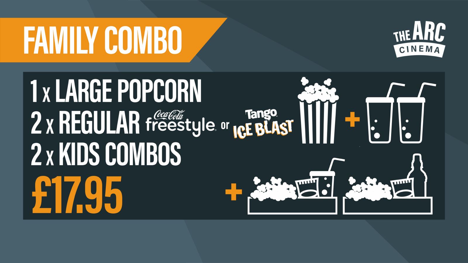 Family Combo: 2 medium drinks, 2 medium popcorn & 2 kids Combos